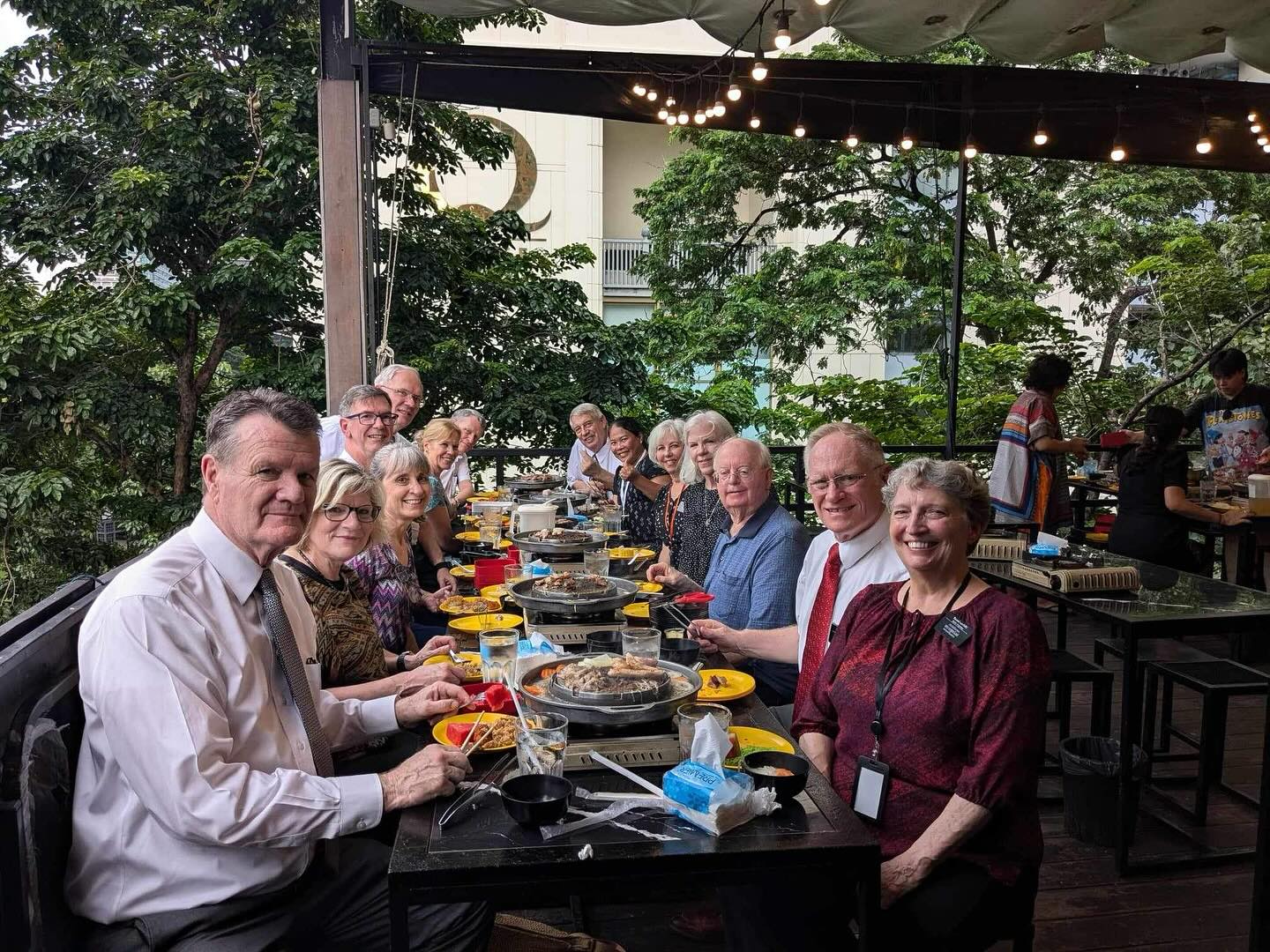 On Monday night, we went to dinner with the Senior Missionaries who could come to a rooftop restaurant across the street from the temple. We are so grateful for their generosity to include us in their circle, even though we are not full-time missionaries. This map will give an idea of the Bangkok temple district. Russia and Eurasia are not shown but we also have members from China, India, Pakistan, Myanmar, Laos, Cambodia, Vietnam, Malaysia, Singapore, and of course, Thailand. I'm probably missing others.
